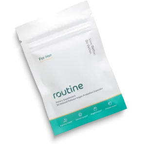 The Routine Prebiotic + Probiotic for Her is a daily probiotic supplement that supports gut health, reduces stress, supports the immune system, improves vaginal health support, and boosts metabolism.